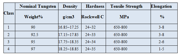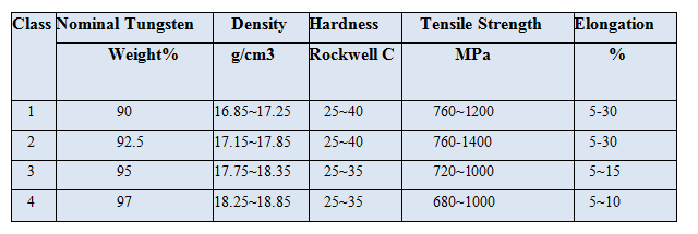 Tungsten copper alloy is a kind of tungsten-based alloy(W content is about 90%-97%) mixed with Ni,Fe or Ni, Cu. Besides, Co,Mo,Cr , etc. is added to some special alloy. The density is 16.75-18.75 g/cc.